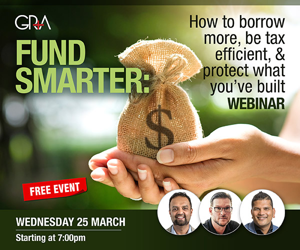 Join us for this free webinar on 25 March at 7pm where Kris Pedersen (Kris Pedersen Mortgages), Salesh Chand, and Than Sundar will walk you through how to get funding, reduce your tax bill and protect your assets – all at the same time.